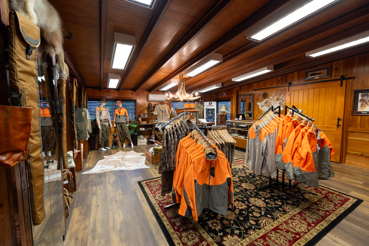 Our Pro Shop features a curated selection of premium sporting apparel and gear, including Orvis and other renowned brands. From field essentials to refined lifestyle pieces, it's the perfect place to prepare for the day or find a lasting keepsake from your visit.